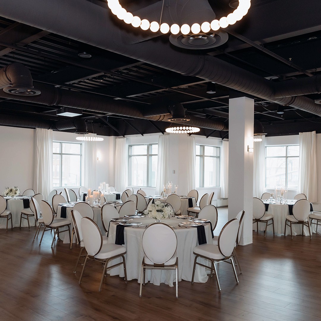 Welcome to The Opal, an event space where modern sophistication takes center stage. With its sleek black industrial ceiling, warm contemporary lighting, and a stunning bar featuring elegant penny tile detailing, The Opal offers a refined atmosphere perfect for hosting memorable events. Designed to accommodate up to 200 guests, this versatile venue blends moody charm with timeless style, making it an exceptional choice for weddings, corporate gatherings, and celebrations alike.