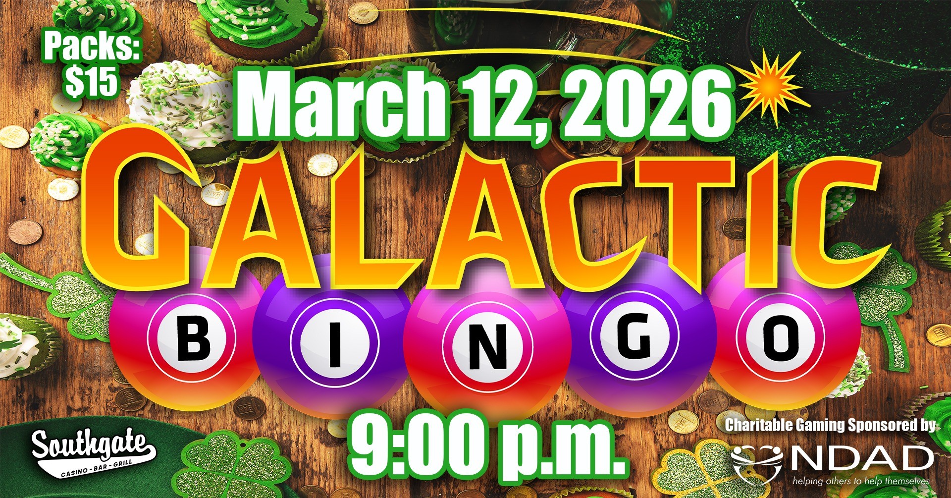 Get ready for an out-of-this-world experience at Southgate! With a live DJ, big money giveaways, mini-games between bingo rounds and as much dancing as you can handle, Galactic Bingo is the place to be.