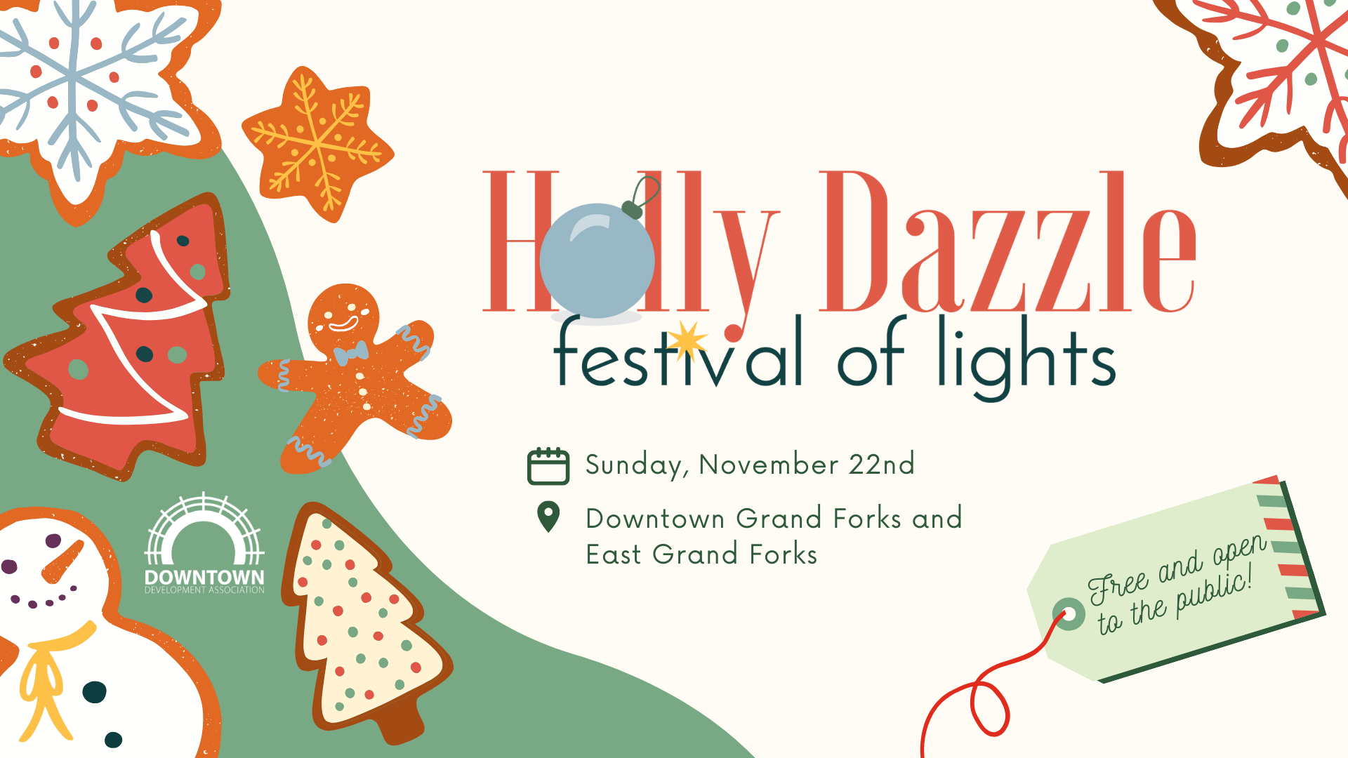 The Downtown Development Association is excited to bring HollyDazzle back to Downtown Forks on Sunday, November 22nd! Come kick off the holiday season with this tradition of holiday activities like s’mores, fireworks, ornament decorating, and a parade of lights for the entire community! This event is FREE and open to the public! Activities are located across both downtown Grand Forks and downtown East Grand Forks!