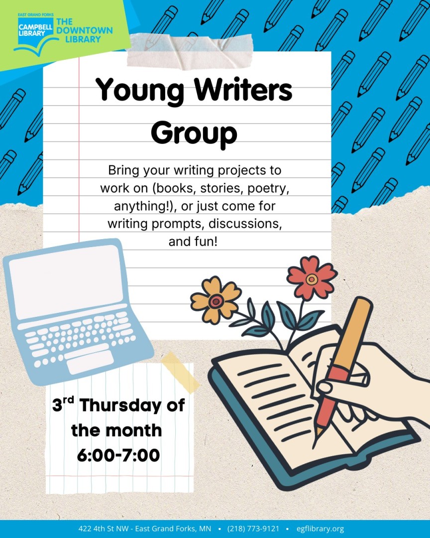 Bring your writing projects to work on (books, stories, poetry, anything!), or just come for writing prompts, discussions, and fun!